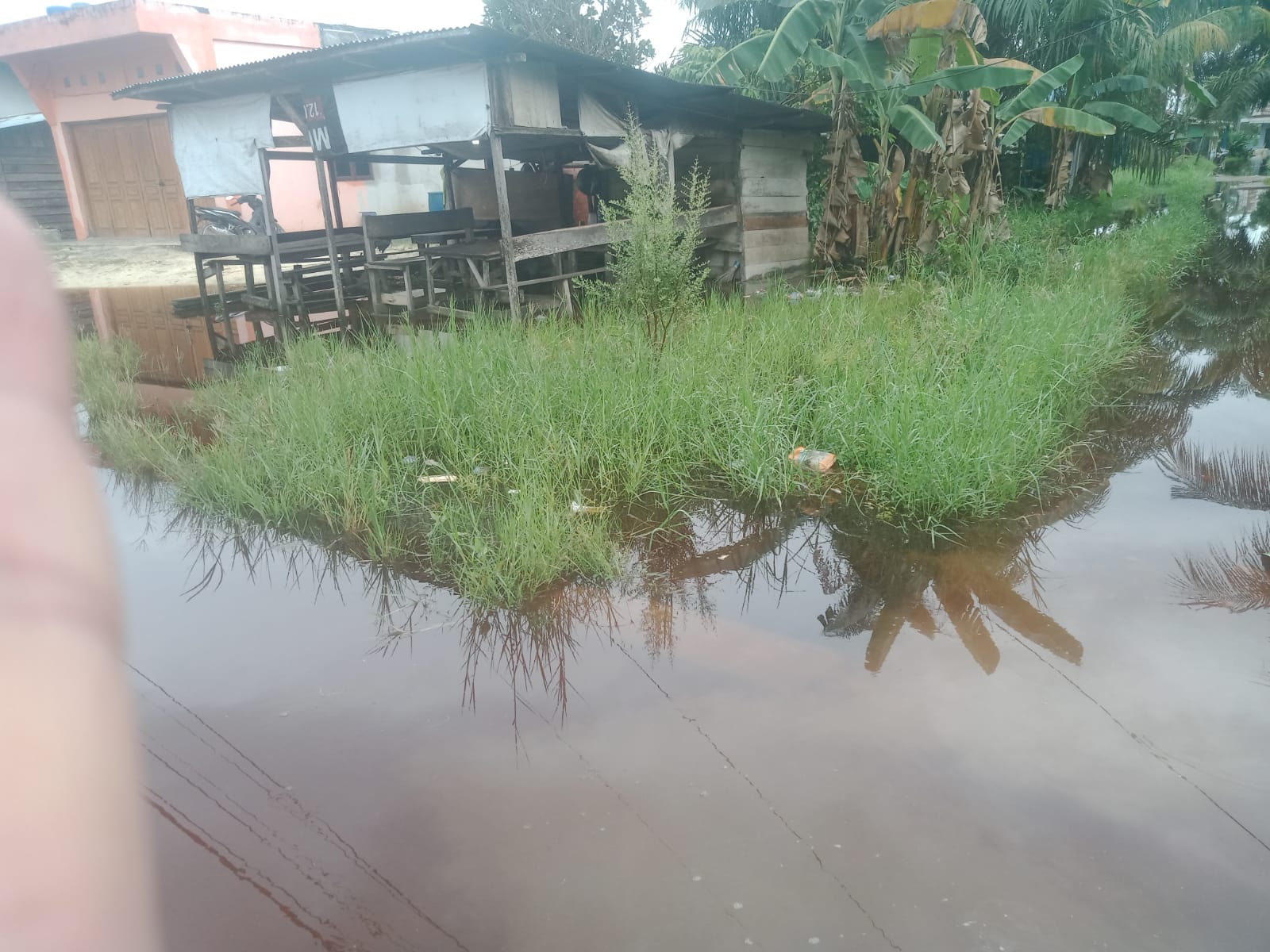 Akibat curah air hujan deras GG melati kelurahan jaya Mukti kota Dumai kebanjiran warga pun jadi resah