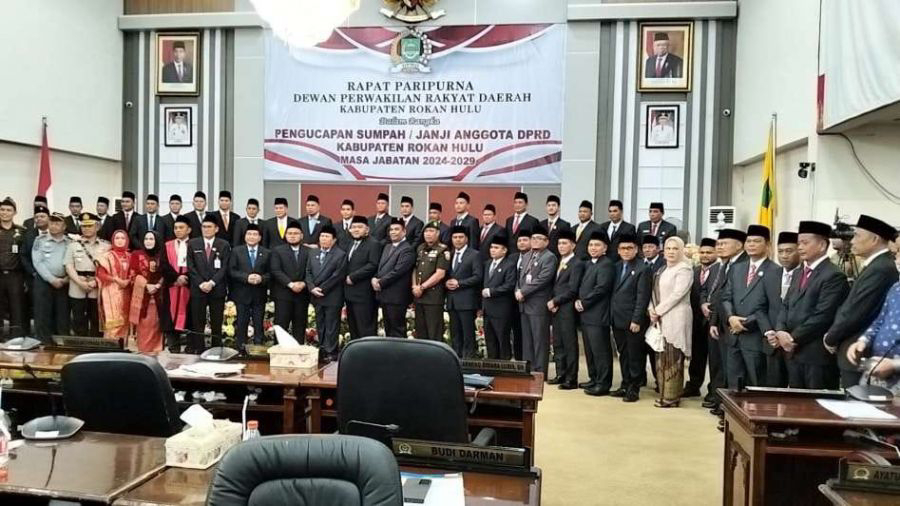 Rokan Hulu, Kompas86.com- Sebanyak 45 anggota Dewan Perwakilan Rakyat Daerah (DPRD) Kabupaten Rokan Hulu masa bakti 2024-2029 resmi dilantik dan diambil sumpahnya. Pelantikan ini dilakukan dalam rapat paripurna DPRD yang digelar di Gedung DPRD Rokan Hulu, yang dipimpin langsung oleh Ketua DPRD Kabupaten Rokan Hulu, Novliwanda Ade Putra, S.T.,M.Si. Senin (02/09/2024).