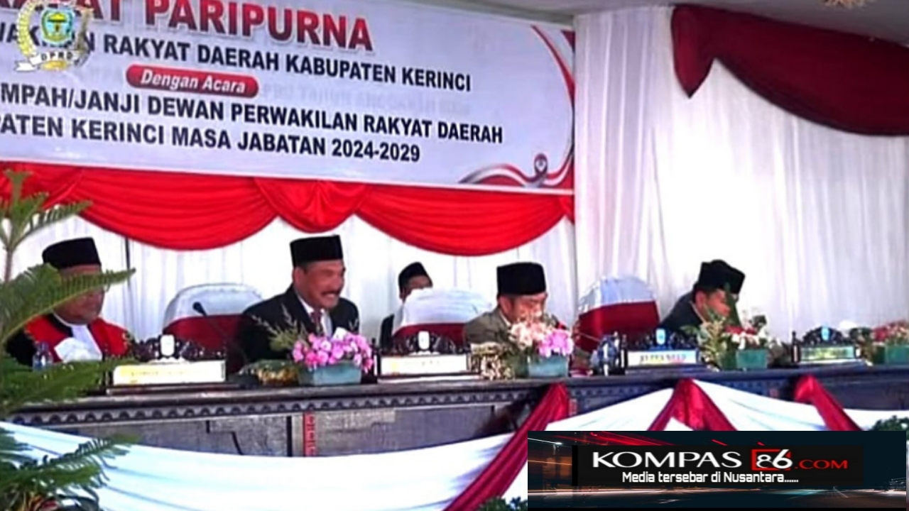Kerinci, Kompas86.com – Paripurna pengambilan Sumpah/Janji 30 anggota DPRD Kerinci yang bertempat di kantor sementara DPRD Kerinci Ujung Ladang. Acara yang digelar dengan penuh khidmat dan sakral saat 30 anggota DPRD mengucapkan sumpah/janji anggota DPRD Kerinci periode 2024-2029. Rabu 28/8/24)