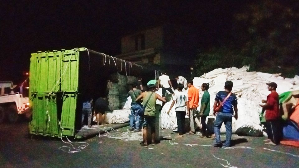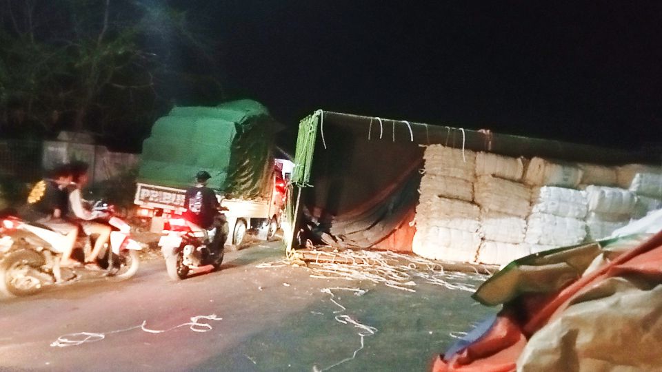 Kronologis kejadian Mobil yang Ber pelat nomor BE 9571 CY muatan ribuan karung kosong asal dari jakarta tujuan hendak dibawa ke palembang,