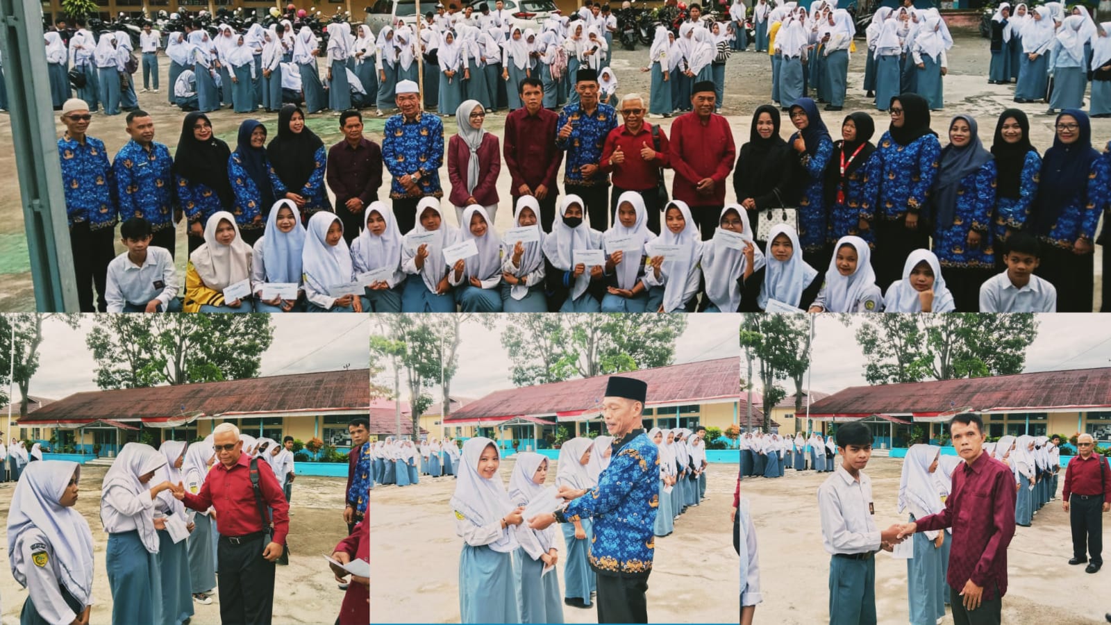 Acara yang dihadiri oleh Kepala Sekolah, Ketua Harian, Sekretaris Alumni SMKN 1, serta Siswa – Siswi Penerima Santunan SMK 1 Sungai Penuh.