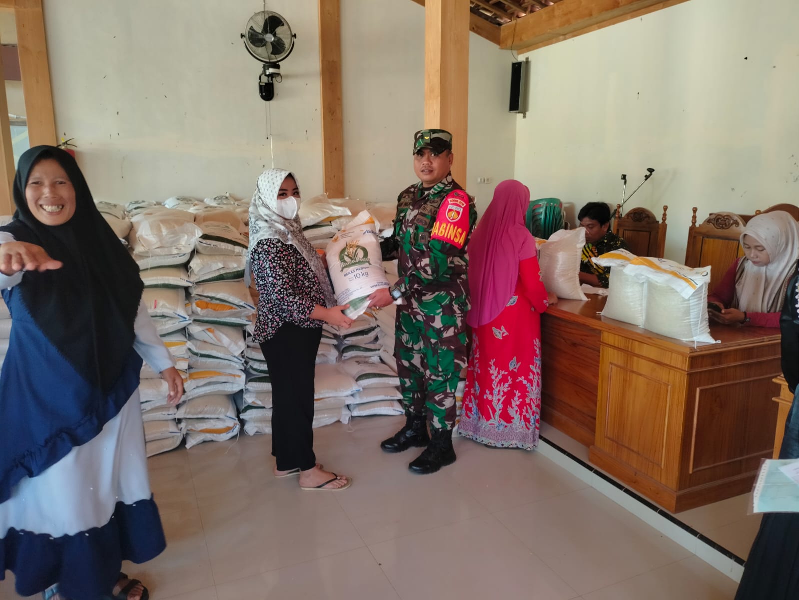 Serda Kenang menyampaikan bahwa kehadirannya di lokasi merupakan bentuk dukungan TNI melalui Babinsa dalam memastikan pembagian bantuan berjalan aman, tertib, dan tepat sasaran.