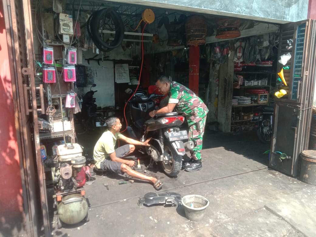 Jepara 17-7-2025– Dalam rangka mempererat hubungan dan menjalin silaturahmi dengan warga binaan, Babinsa Desa Bugo, Serda Sulaiman, anggota Koramil 06/Welahan Kodim 0719/Jepara, melaksanakan kegiatan Komunikasi Sosial (Komsos) dengan salah satu warga, Bapak Amir, yang merupakan pemilik bengkel di lingkungan RT 03 RW 02, Desa Bugo, Kecamatan Welahan, Kabupaten Jepara, Kamis (17/07/2025).