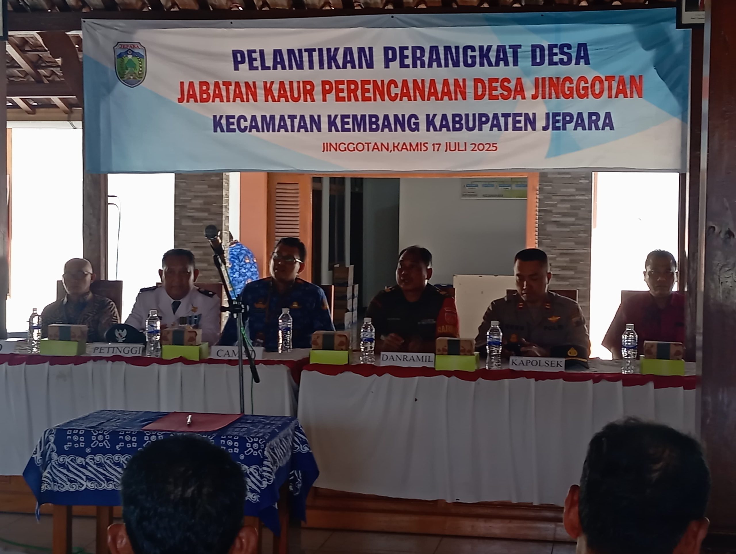 Jepara 17-7-2025– Danramil 07/Bangsri Kapten Inf. Sunarto melalui Babinsa Desa Jinggotan Peltu Ubaidurrohman menghadiri acara Pelantikan Perangkat Desa dalam Jabatan Kaur Perencanaan Desa Jinggotan, Kecamatan Kembang, Kabupaten Jepara, yang digelar di Balai Desa Jinggotan, pada Kamis (17/07/2025).