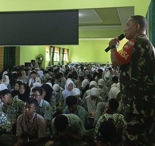 Jepara 17-7-2025– Dalam rangka Masa Pengenalan Lingkungan Sekolah (MPLS) tahun ajaran 2025/2026, Babinsa Desa Jerukwangi, Pelda Aris Widianto yang merupakan anggota Koramil 07/Bangsri Kodim 0719/Jepara, memberikan materi Wawasan Kebangsaan kepada para siswa baru SMA Negeri 1 Bangsri, yang berlokasi di Desa Jerukwangi, Kecamatan Bangsri, Kabupaten Jepara, Kamis (17/07/2025).