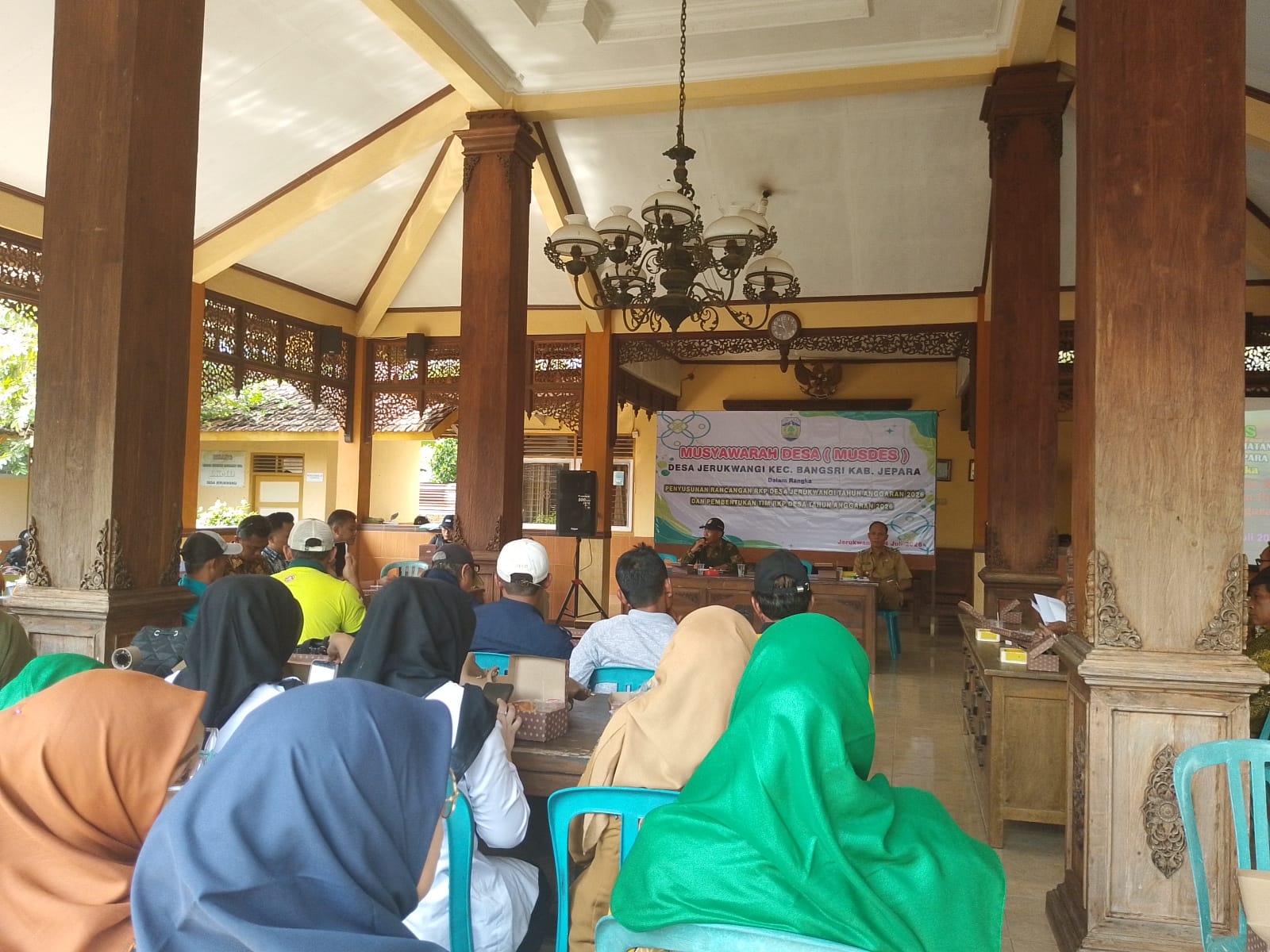 Turut hadir dalam kegiatan tersebut unsur Pemerintah Kecamatan Bangsri, Pemerintah Desa Jerukwangi, BPD, tokoh masyarakat, kader desa, serta Babinsa dan Bhabinkamtibmas.