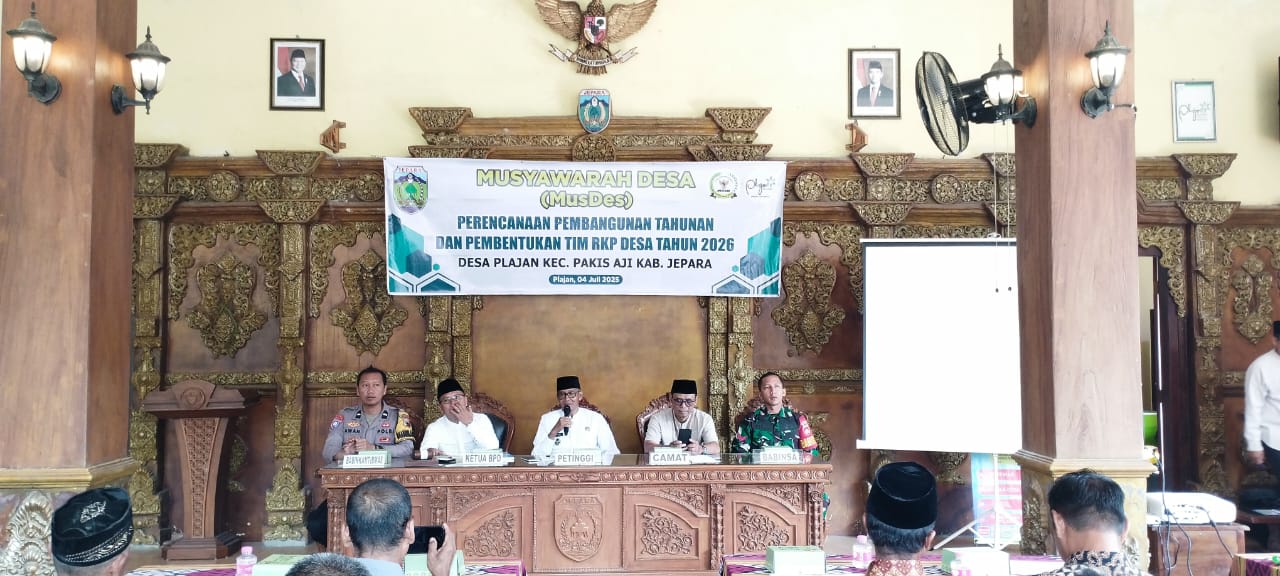 Jepara 4-7-2025 – Anggota Koramil 09/Mlonggo, Koptu Ricco yang menjabat sebagai Babinsa Desa Plajan, menghadiri kegiatan Musyawarah Desa (Musdes) Perencanaan Pembangunan Tahunan sekaligus pembentukan Tim Penyusun Rencana Kerja Pemerintah Desa (RKPDES) Tahun 2026. Kegiatan tersebut dilaksanakan di Balai Desa Plajan, Kecamatan Pakis Aji, Kabupaten Jepara, pada hari Jumat [4/7].