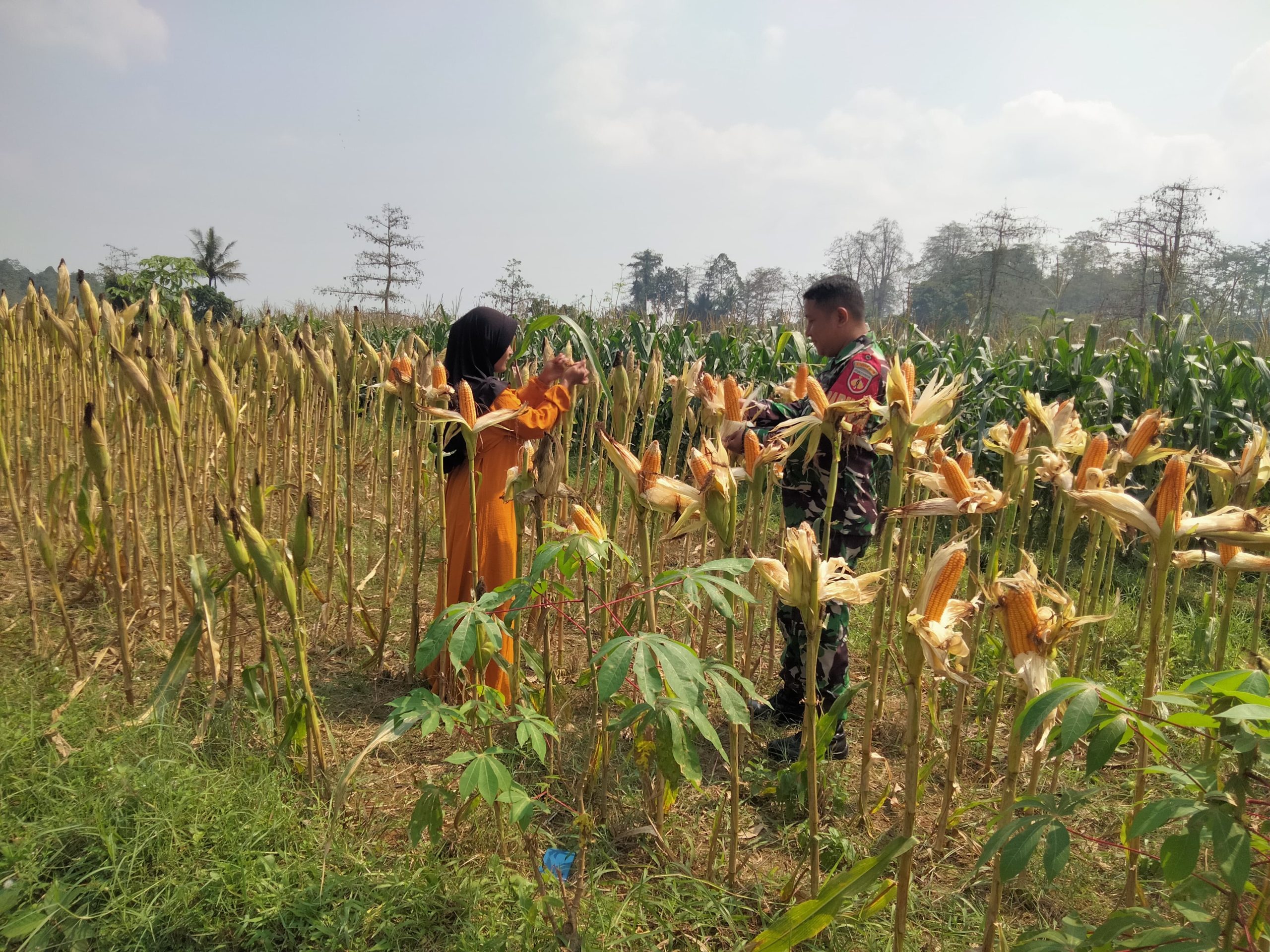Babinsa Sumanding Bantu Panen Jagung di Lahan Kelompok Tani Karya Tani