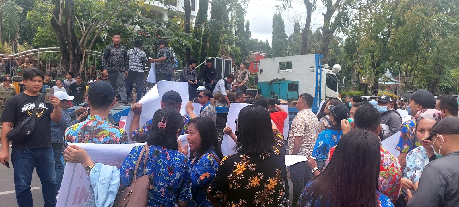 Marlon Sarinda, Salah seorang ASN yang ikut aksi damai membenarkan pendapat tersebut. Dia bersama seluruh pegawai tidak digerakkan untuk menyerang personal, tapi sedang berupaya menuntut pembayaran gaji dan hak lainnya.