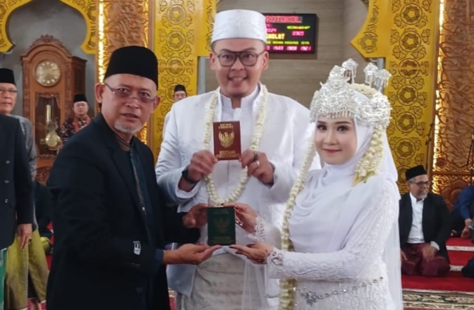 Pada kesempatan ini, memimpin akad nikah putra pertama dan juga putra tunggal Ketua Umum Masjid Raya Baitul Izzah (MRBI) Provinsi Bengkulu ini Penghulu ASN PNS Fakhruddin,SHI dari unit kerja Kantor Urusan Agama (KUA) Kecamatan Muara Bangkahulu Kota Bengkulu.
