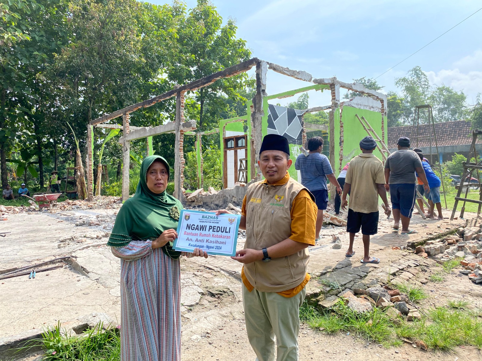 Ngawi (JATIM) Kompas86.com__, Ketua Baznas Kabupaten Ngawi, Samsul Hadi, menyerahkan bantuan kepada guru PAUD Kelompok Bermain (KB) Anti Kasihani yang menjadi korban dalam bencana kebakaran yang terjadi beberapa waktu lalu.