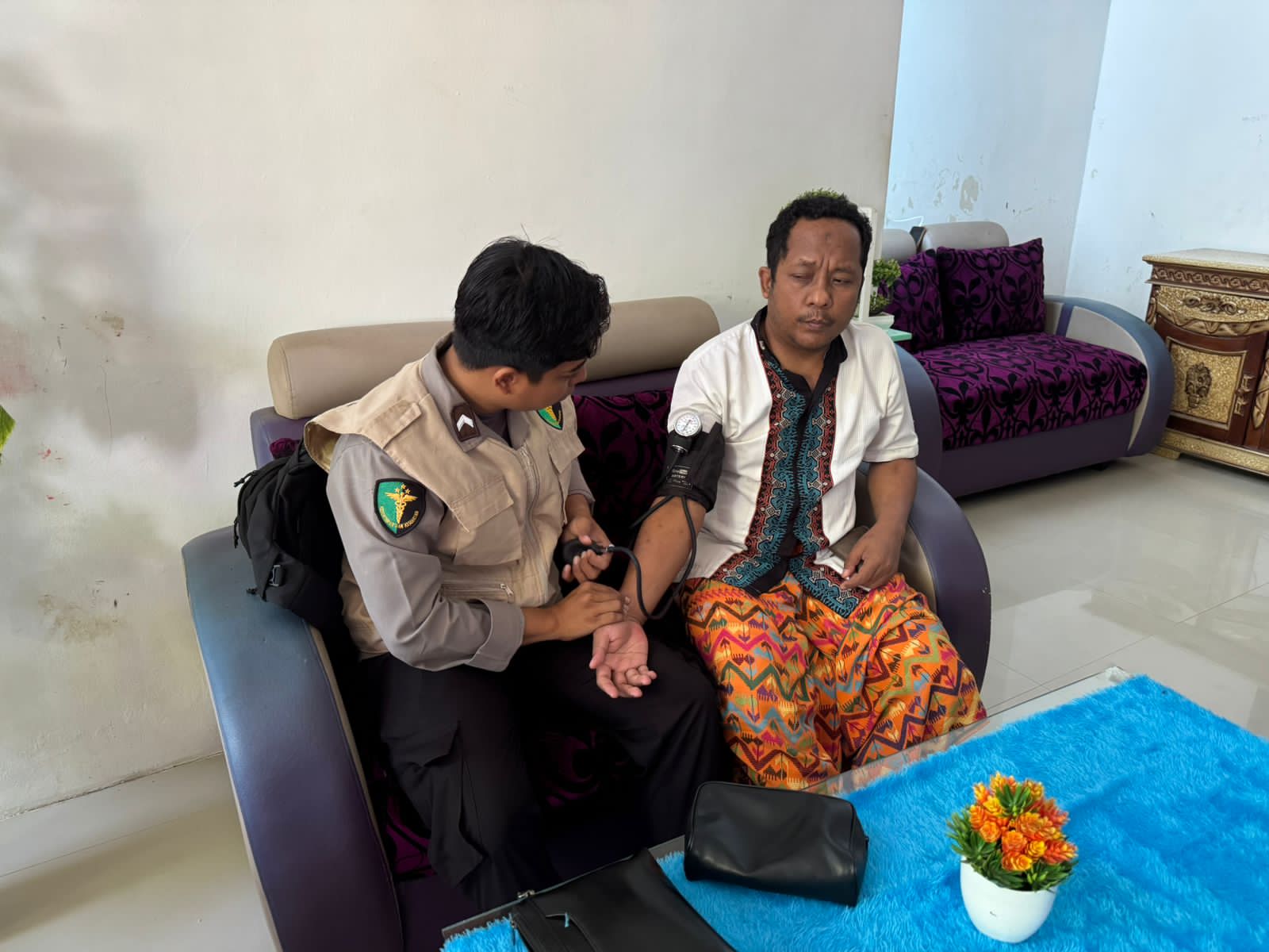Dalam pelaksanaan kegiatan tersebut dilakukan pemeriksaan kesehatan yang mencakup pengecekan tekanan darah, mata yang sakit dan pemberian vitamin.