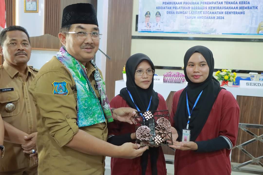 Kuala Tungkal – Bupati Tanjung Jabung Barat, Drs. Anwar Sadat, M.Ag, mengungkapkan bahwa pelatihan membatik berbasis kewirausahaan merupakan langkah strategis untuk menciptakan tenaga kerja yang kompeten dan bermental wirausaha. Hal tersebut disampaikan saat membuka pelatihan membatik oleh Dinas Tenaga Kerja Kabupaten Tanjung Jabung Barat di Aula Kantor Desa Sungai Landak. Senin (3/6)