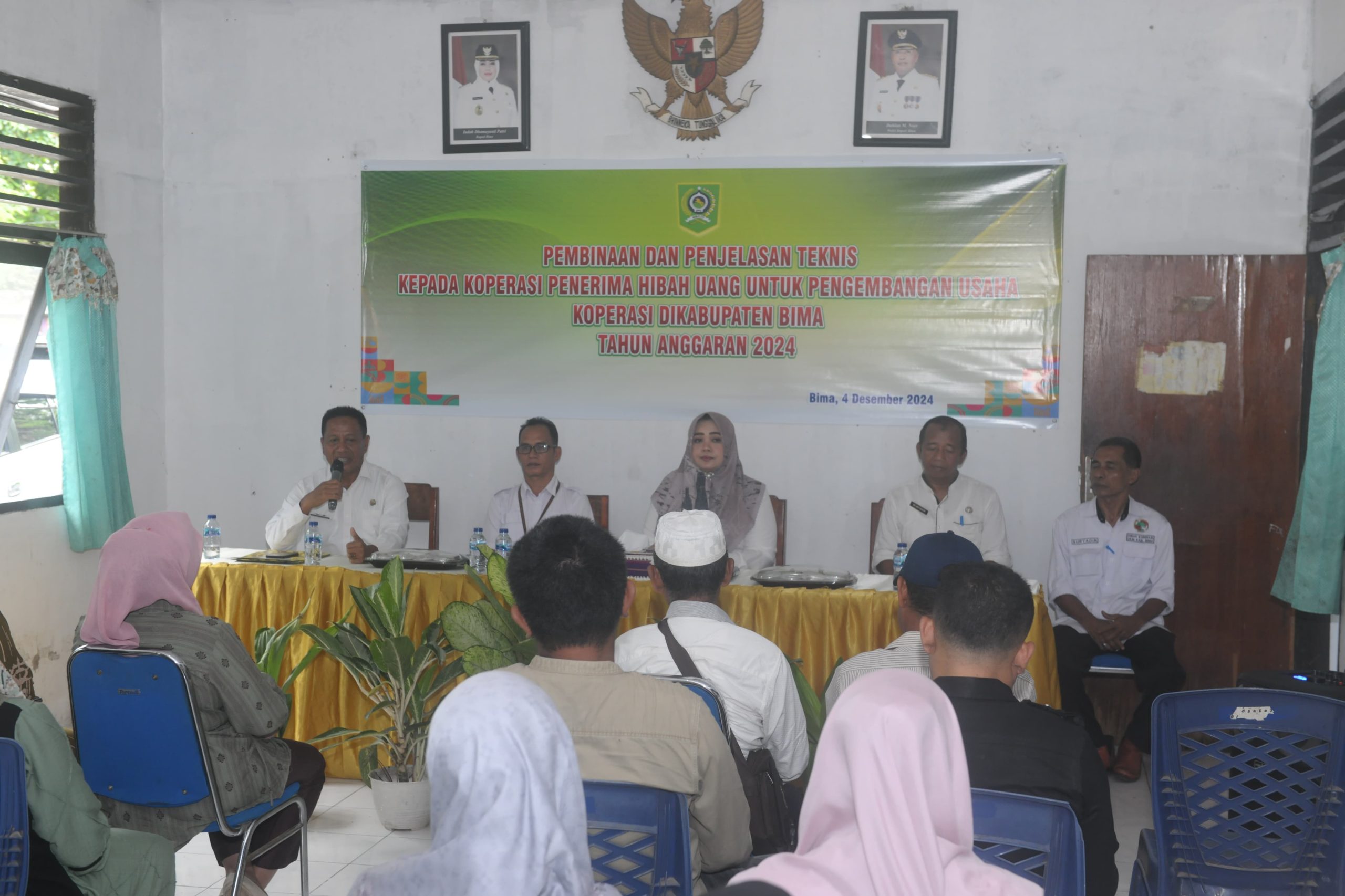 Bupati Bima yang didampingi Kadis Koperasi dan UKM Kabupaten Bima Drs. Dahlan dan para Kepala Bidang dalam arahannya menjelaskan, “pemberian hibah koperasi ini ditujukan bagi pengembangan usaha agar koperasi dapat berkembang, meningkatkan pelayanan dan kesejahteraan anggota juga masyarakat pada umumnya”. Terang Bupati.