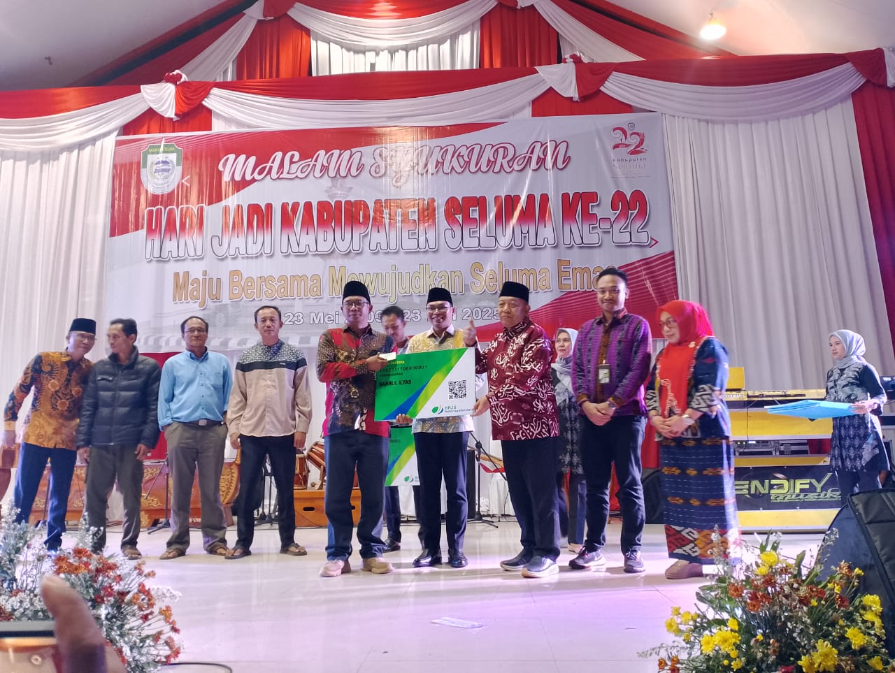Seluma – Pemerintah Kabupaten Seluma menggelar acara Malam Syukuran dalam rangka memperingati Hari Jadi ke-22 Kabupaten Seluma Tahun 2025, yang berlangsung meriah di Taman Wisata Kota Seluma, Jum’at malam (23/5/2025). Acara ini mengusung tema “Maju Bersama Mewujudkan Seluma Emas.”