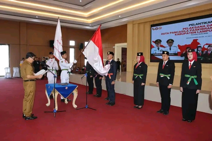 Kotabumi—Kompas86.com Bupati Lampung Utara, Dr.Ir. Hamartoni Ahadis, M.Si., secara resmi melantik Pelaksana Duta Pancasila Paskibraka Indonesia (DPPI) Kabupaten Lampung Utara Periode 2025–2029 dalam sebuah upacara khidmat yang digelar di Gedung Pusiban Agung Kotabumi.(21/7/25)