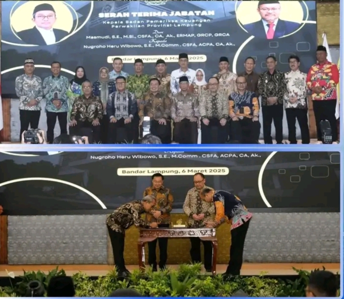 Bandar Lampung,Kompas86.Com Bupati Lampung Utara, Dr.Ir.H. Hamartoni Ahadis,M.Si., menghadiri Serah Terima Jabatan (Sertijab) Kepala Badan Pemeriksa Keuangan (BPK) Perwakilan Lampung dari Bapak Masmudi,S.E.,M.Si., CSFA.,CA,AK.,ERMAP, GRCP, GRCA. kepada Bapak Nugroho Heru Wibowo,S.E.,M.Comm., CSFA,ACPA,CA,Ak.Acara berlangsung di Ruang Auditorium Kantor BPK Perwakilan Lampung, pada Kamis, 6 Maret 2025.