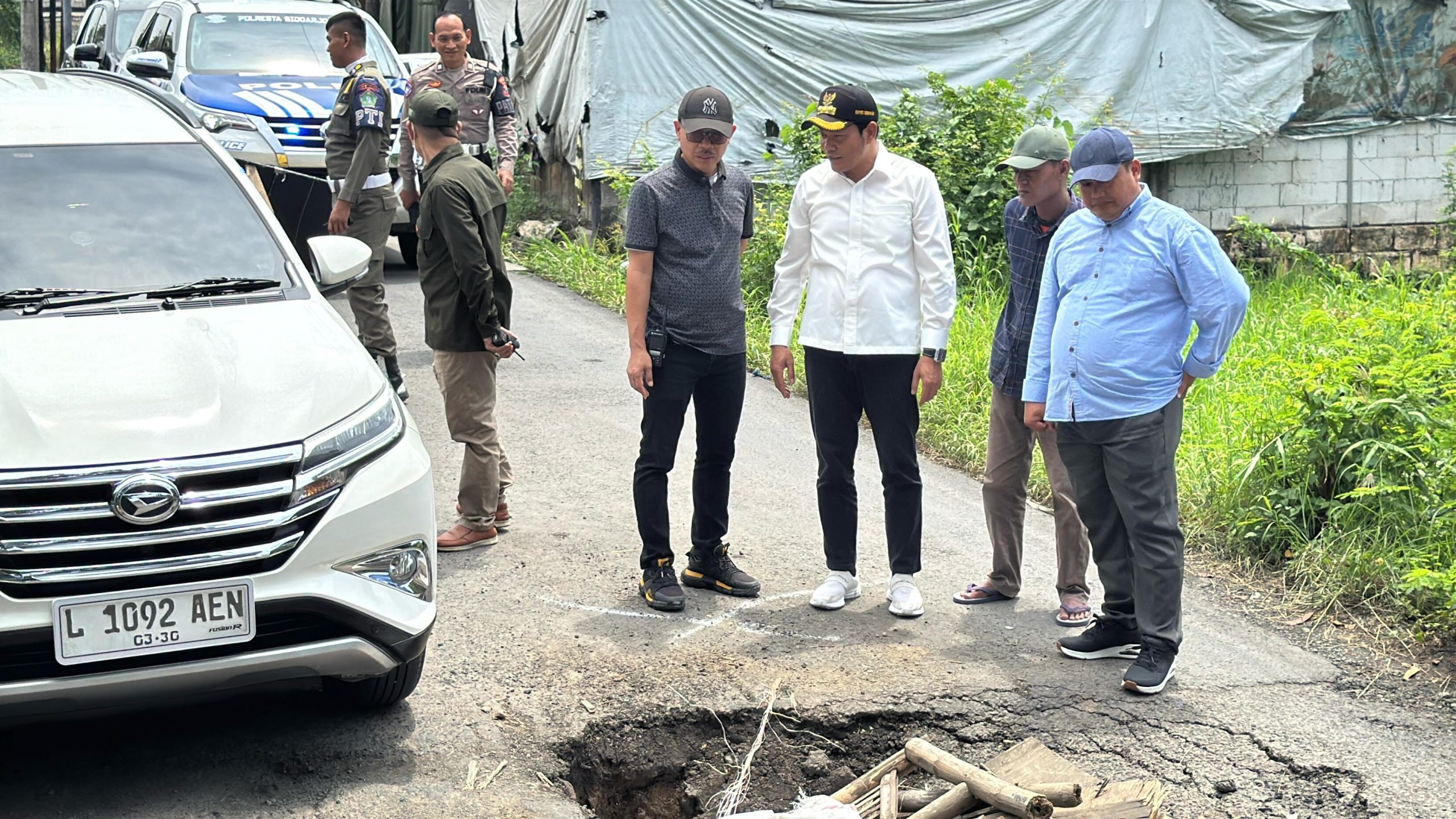 Sidoarjo |Jatim | Bupati Sidoarjo, H. Subandi, melakukan inspeksi mendadak (sidak) ke lokasi jembatan ambles di Desa Banjarsari, Kecamatan Buduran, Sidoarjo. Dalam sidaknya, ia menemukan kondisi jembatan yang berlubang dan cukup mengkhawatirkan bagi para pengguna jalan.