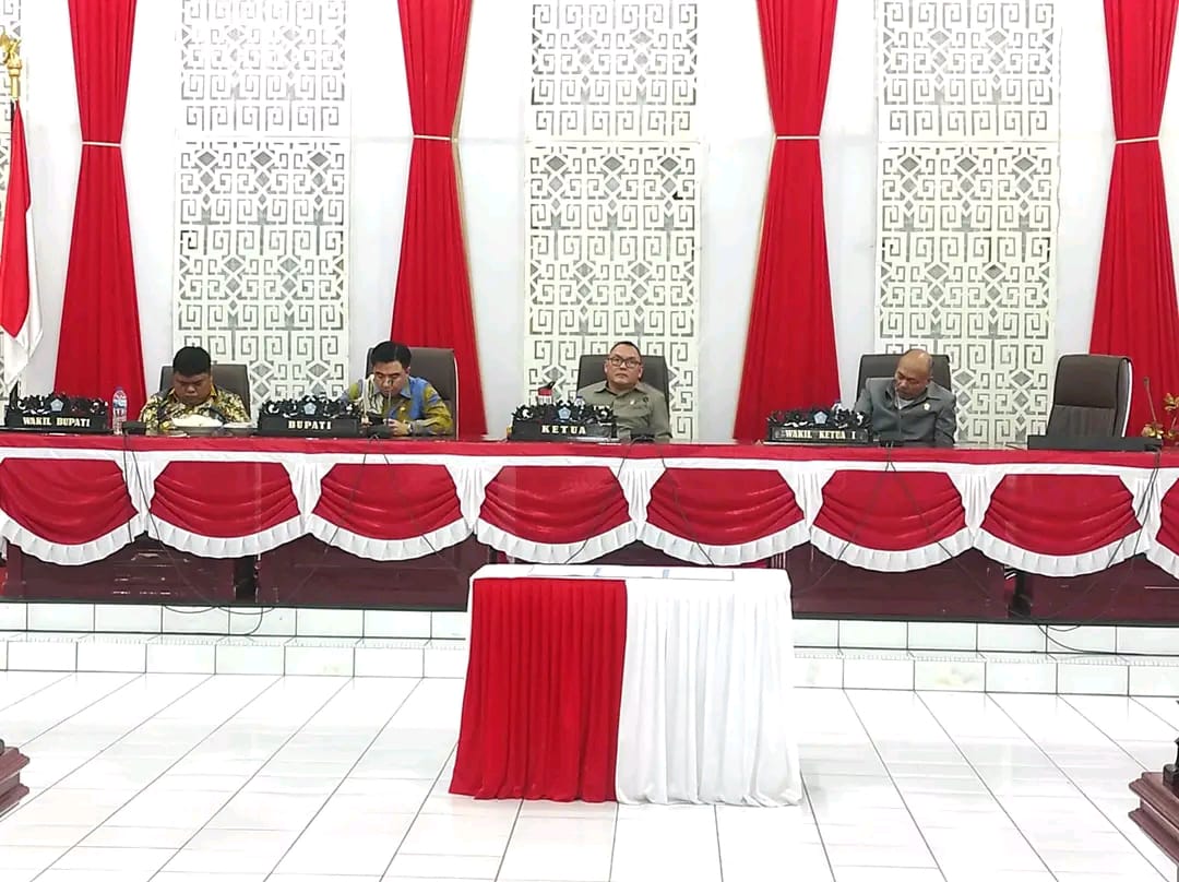 Rapat paripurna yang dilaksanakan diruang rapat DPRD Sangihe Kamis(10/7/2025) dipimipin oleh Ketua DPRD Ferdy Sondakh, SE didampingi wakil ketua Risal Paul Makagansa dihadiri Bupati Kabupaten Kepulauan Sangihe Michael Thungari wakil Bupati Tendris Bulahari serta pimpinan OPD.