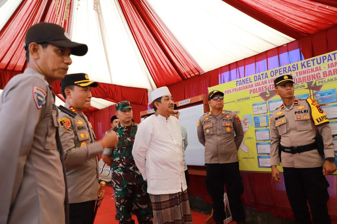 Betara – Bupati Tanjung Jabung Barat, Drs. H. Anwar Sadat, M. Ag., meninjau Pos Pengamanan (PAM) Lebaran di Desa Pematang Lumut, Kecamatan Betara, pada Sabtu (6/4/2024). Kunjungan ini bertujuan untuk memastikan kesiapan Pos PAM dalam menghadapi arus balik Lebaran 2024.