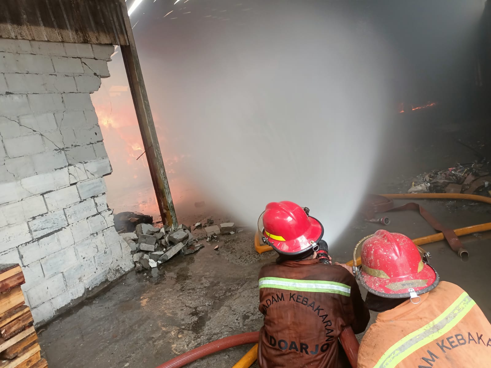 Kompas86 (Jatim) Sidoarjo | Sebuah pabrik pembuatan tempat telur atau egg tray di Desa Sukorejo, Kecamatan Buduran, Kabupaten Sidoarjo hangus terbakar dilahap si jago merah pada Sabtu (10/2/2024) siang pukul 13.35 WIB.