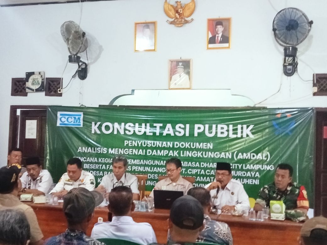 Tim penyusunan AMDAL (Analisis Mengenai Dampak Lingkungan) dari Universitas Lampung menggelar konsultasi publik guna penyusunan Amdal PT. Cipta Cakra Murdaya ( CCM )