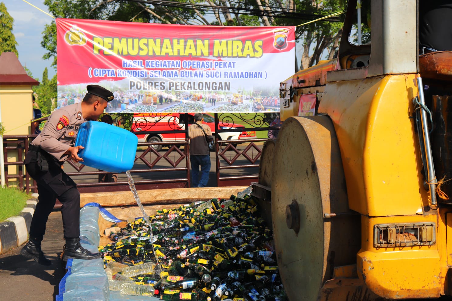 Cipta Kondisi Selama Ramadhan, Polres Pekalongan Musnahkan Ribuan Botol Minuman Keras