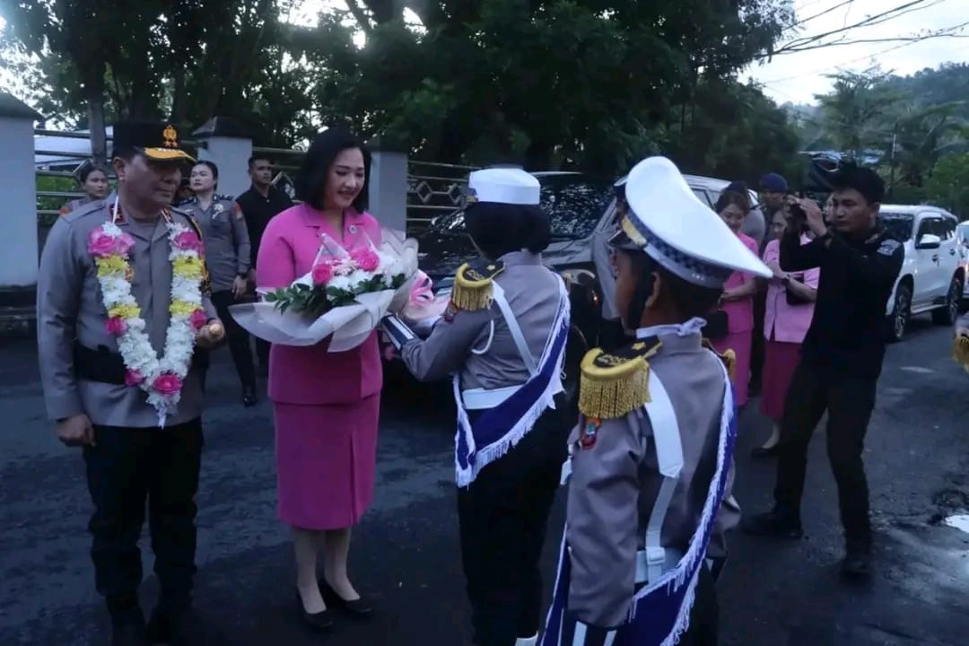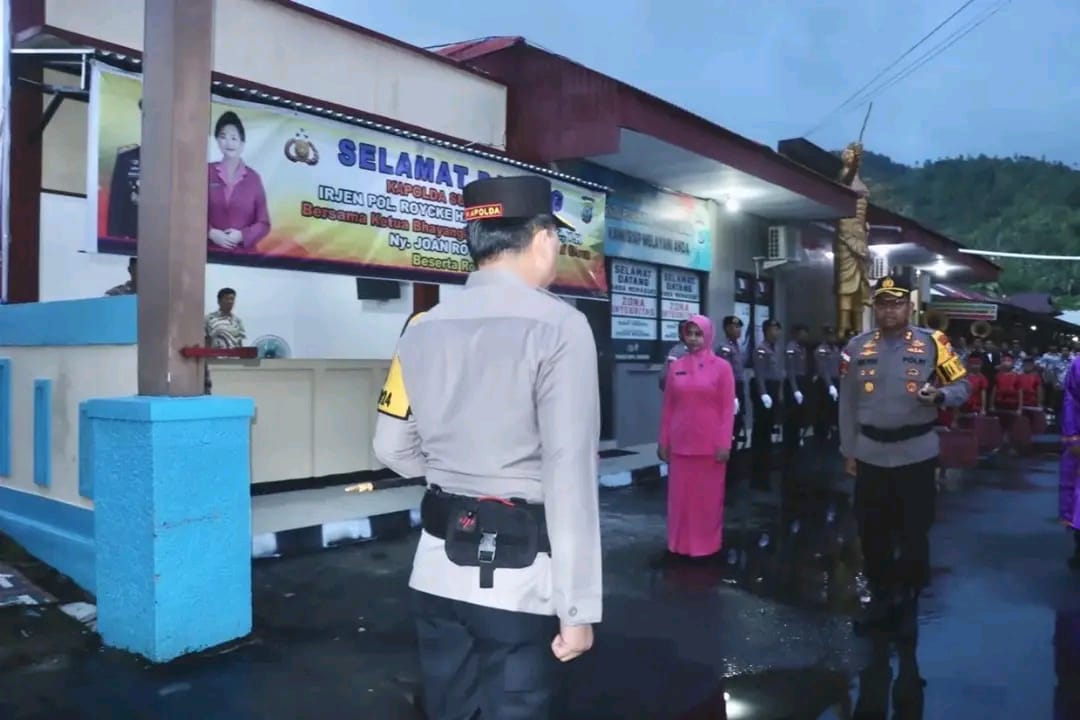 Kunjungan kerja Kapolda Sulawesi Utara Irjen Pol Royke Harry Langie di wilayah hukum polres Sangihe disambut langsung oleh Kapolres Kepulauan Sangihe AKBP Abdul Kholik beserta jajaran Polres Sangihe pada senin (13/01/2025)