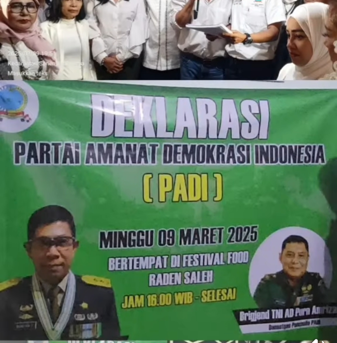 Struktur partai yang diwakilkan 30 persen keterwakilan perempuan,AD ART ,berita acara,surat domisili kantor DPN padi dan akte pendirian diserahkan langsung oleh majelis adat padi ke presiden padi.sedangkan agenda deklarasi secara nasional akan diselenggarakan setelah habis lebaran idul fitri.