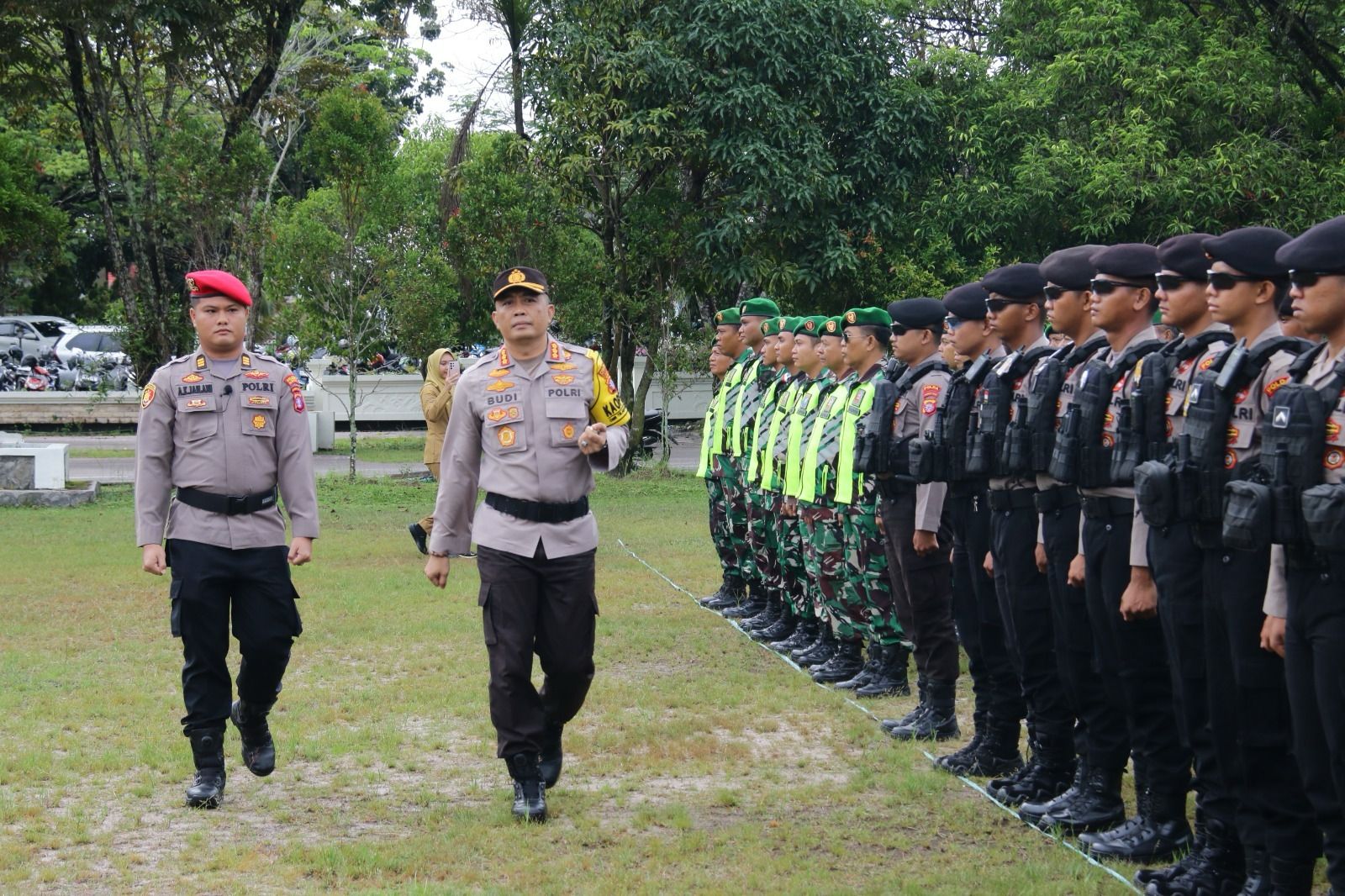Sebagai tanda resminya pergeseran pasukan, Kapolresta Palangka Raya nampak memasangkan ban lengan berwarna kuning bertuliskan Pam TPS kepada personel perwakilan.(Tri)