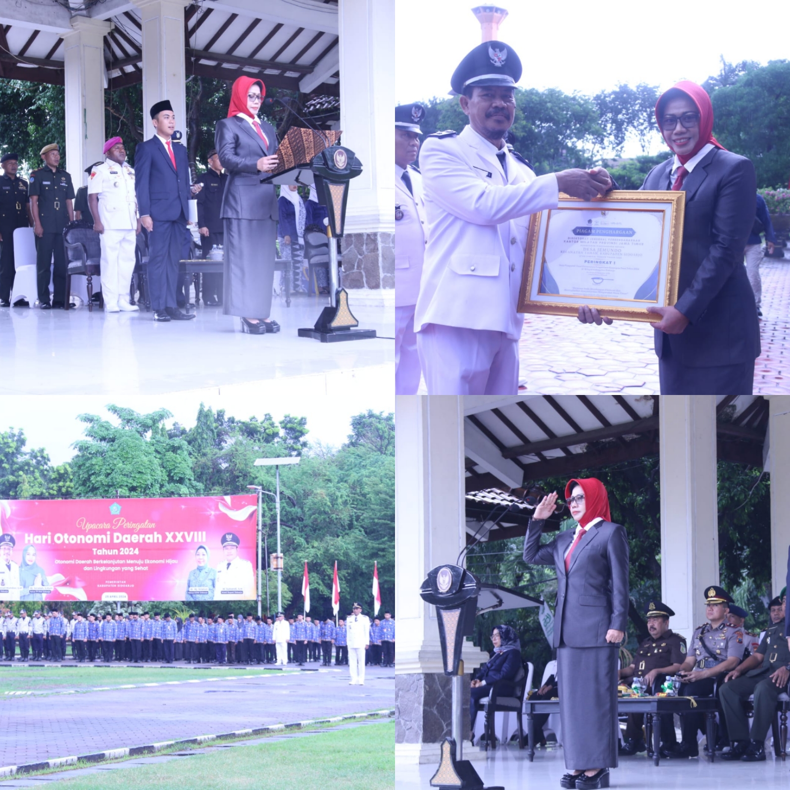 Kompas86.com |Sidoarjo |Jatim | Pemerintah Kabupaten Sidoarjo melaksanakan upacara peringatan Hari Otonomi Daerah yang ke XXVIII tahun 2024, di Alun-alun Sidoarjo, Kamis(25/4). Tema pada peringatan Hari Otonomi Daerah XXVIII kali ini adalah Otonomi Daerah Berkelanjutan Menuju Ekonomi Hijau dan Lingkungan Yang Sehat.