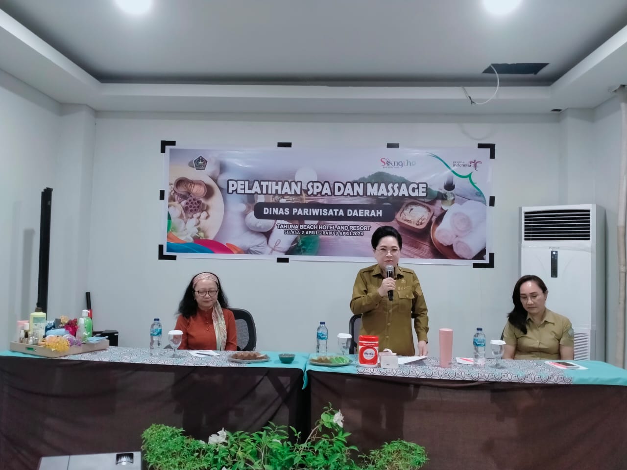 Tamuntuan dalam sambutannya menyanpaikan bahwa : ” Pelatihan SPA dan Masage dilaksanakan dalam rangka pengembangan sumber daya manusia dan peningkatan sektor pariwisata terkait potensi unggul di kabupaten kepulauan sangihe.