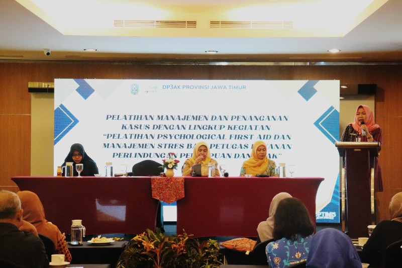 Kadis DP3AK Jatim Tri Wahyu Liswati Selasa (20/8/2024) menyampaikan bahwa maksud dan tujuan kegiatan pelaksanaan Kegiatan Pelatihan Psychological First Aid dan Manajemen Stres Bagi Petugas Layanan Perlindungan Perempuan Dan Anak ini adalah untuk meningkatkan kapasitas dan kompetensi petugas layanan perlindungan perempuan dan anak dalam memberikan dukungan psikologis awal serta mengelola stres yang timbul selama pelaksanaan tugas.
