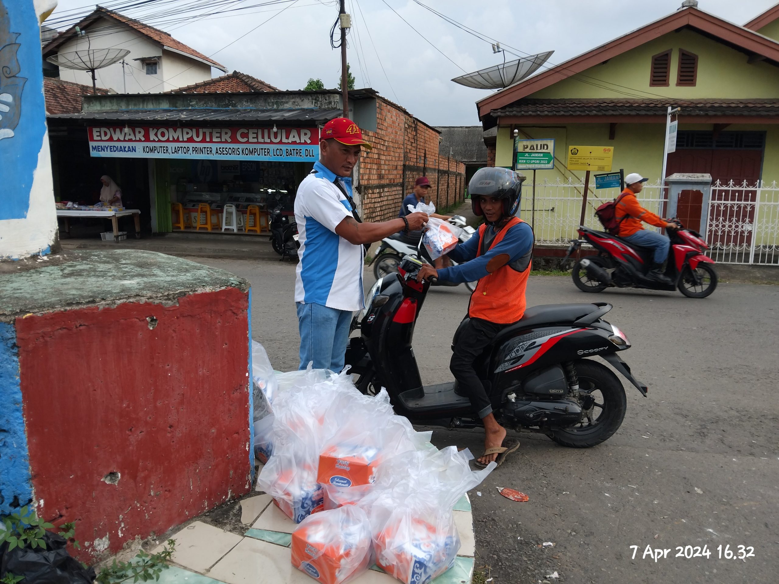 Antusias anggota DPC PPWI Muara Enim membagikan 200 kotak snack takjil kepada warga yang melintas di bundaran simpang tiga sambil ngabuburit menantikan waktu berbuka puasa tiba.