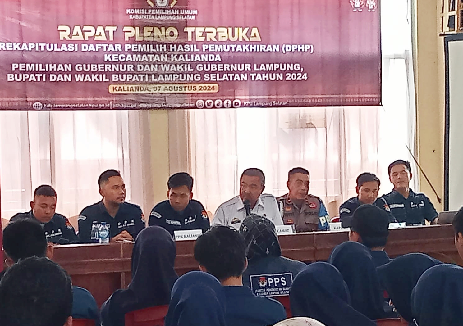 KOMPAS86.COM, Lampung-selatan, Pasca dilakukannya rapat pleno terbuka daftar pemilih hasil pemutakhiran (dphp) di tingkat desa dan kelurahan maka dilanjutkan di tingkat kecamatan oleh panitia pemilihan kecamatan (ppk). hal tersebut juga dilakukan oleh ppk kecamatan kalianda yang menggelar rapat pleno terbuka rekapitulasi daftar pemilih hasil pemutakhiran (dphp) yang dilaksanakan di aula kantor kecamatan kalianda , kabupaten lampung selatan, rabu (7/8/2024).