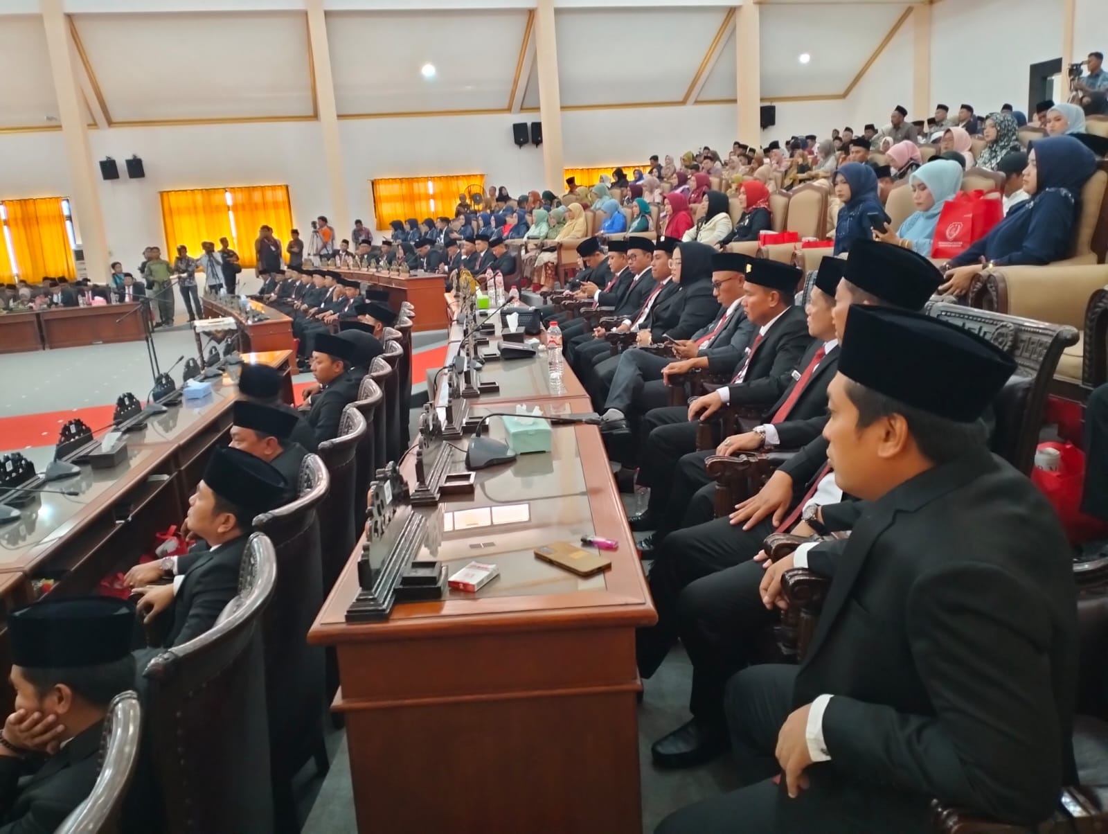 Rudi juga mengucapkan syukur atas pelaksanaan Pemilu 2024 yang berlangsung aman dan damai dan juga mengucapkan terima kasih kepada anggota DPRD periode 2019-2024 atas dedikasi mereka dalam melaksanakan fungsi legislatif dan memperjuangkan aspirasi masyarakat.
