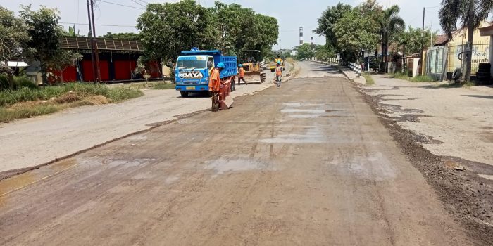 Perbaikan Jalan Prambon sebelah PT. Pabrik Kertas Indonesia (PT. Pakerin) dilakukan mulai hari Jum’at kemarin (22/3).
