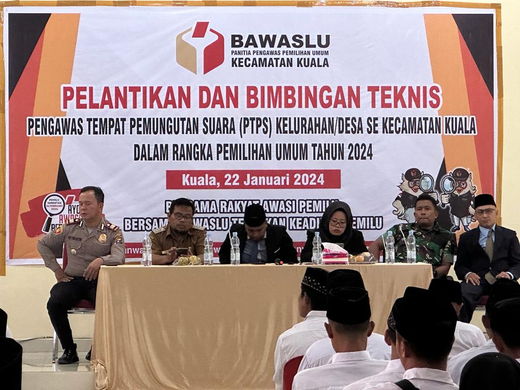 Dalam sambutan Kapolsek Kuala, menyampaikan; Kepada seluruh petugas Pengawas TPS agar tetap semangat dan Profesional dalam melakukan Pengawasan nantinya di setiap TPS saat dihari pencoblosan, dan Saya ucapkan selamat atas dilantiknya 54 orang Pengawas TPS.