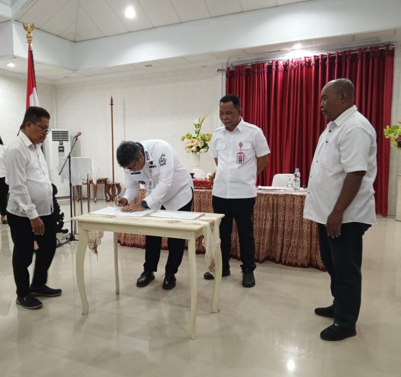 Dalam rapat kerja pemerintah Kabupaten Kepulauan Sangihe juga dilaksanakan penandatanganan perjanjian kinerja perangkat daerah dan pakta integritas. (Arifin Lakoro)