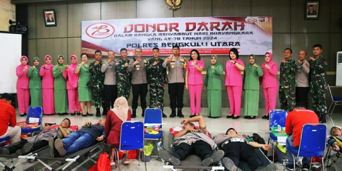 “Dalam rangka menyambut HUT ke-78 Bhayangkara, kami turut melaksanakan bakti kesehatan dengan donor darah yang mana kegiatan ini Melibatkan anggota Polres Bengkulu Utara dan jajaran,” terang Kapolres Bengkulu Utara, Selasa(25/6/2024).
