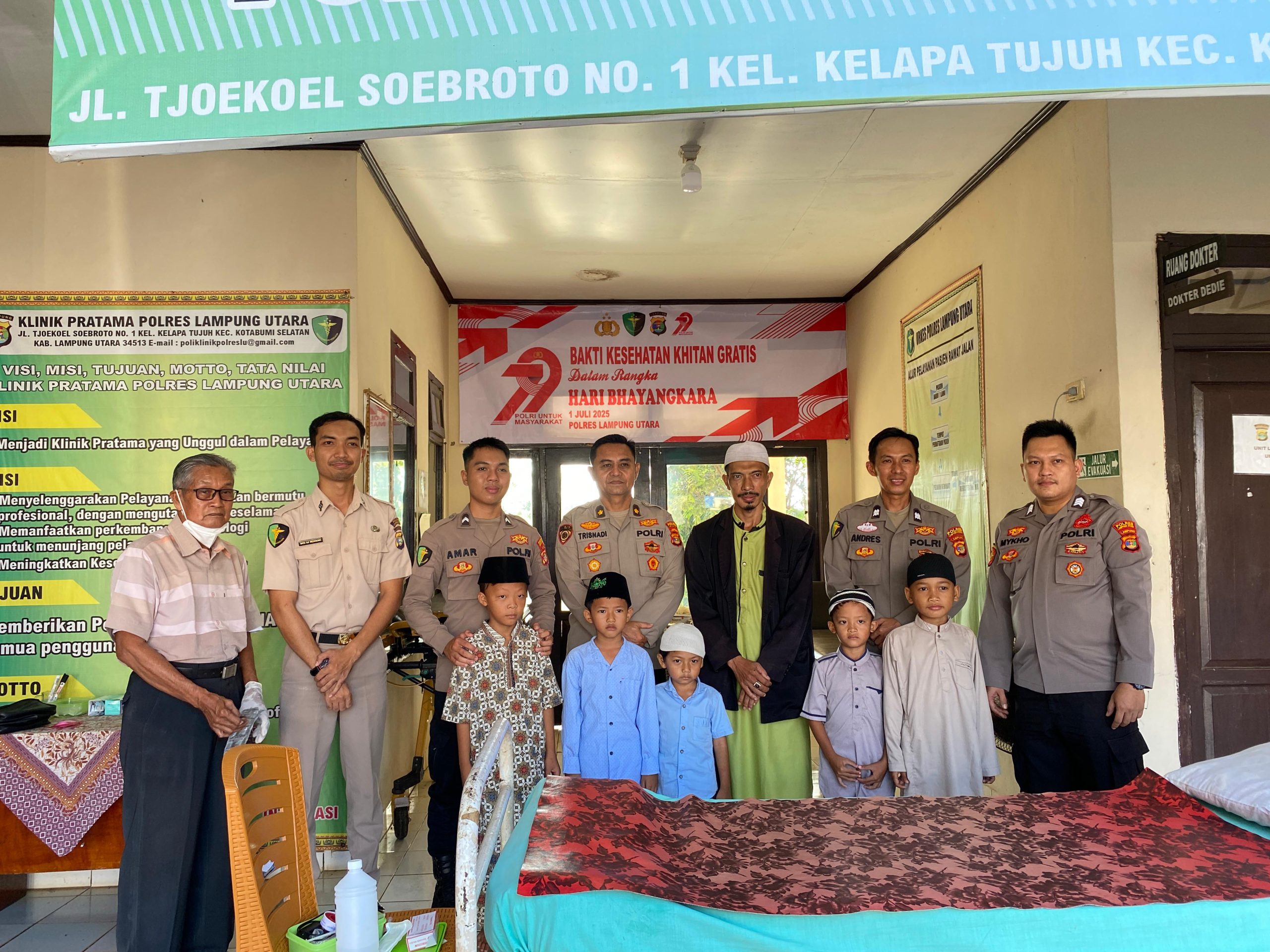Kapolres Lampung Utara melalui Kasi Humas AKP Budiarto mengatakan, sunat massal ini adalah salah satu wujud nyata pengabdian Polri dalam memberikan pelayanan kepada masyarakat, serta menjadi bagian dari semarak Hari Bhayangkara ke-79?.