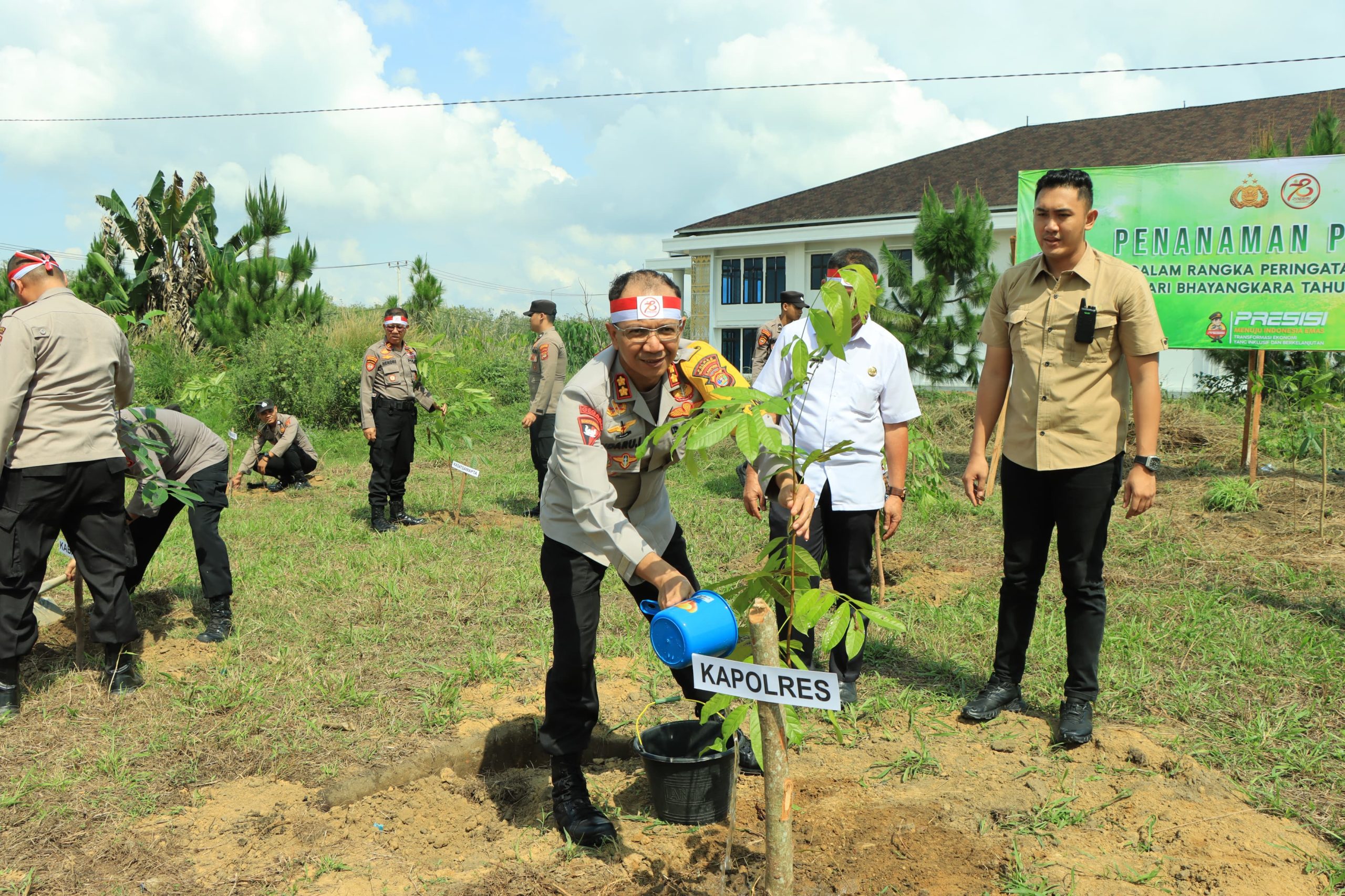 HUT Bhayangkara ke-78: Polres Tulang Bawang Barat Lakukan Penanaman Pohon, Ketahanan Pangan Dan Bea Siswa Berprestasi Serentak