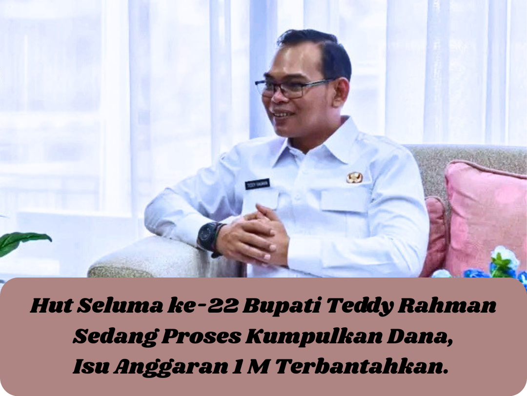 Kompas86.com Seluma – Kabar adanya Anggaran fantastis hingga 1 Miliar untuk perayaan Hari Ulang Tahun (HUT) Kabupaten Seluma akhirnya terbantahkan. Hal ini terungkap setelah Bupati Seluma, Tedyy Rahman menyatakan masih dalam tahap pengumpulan dana.