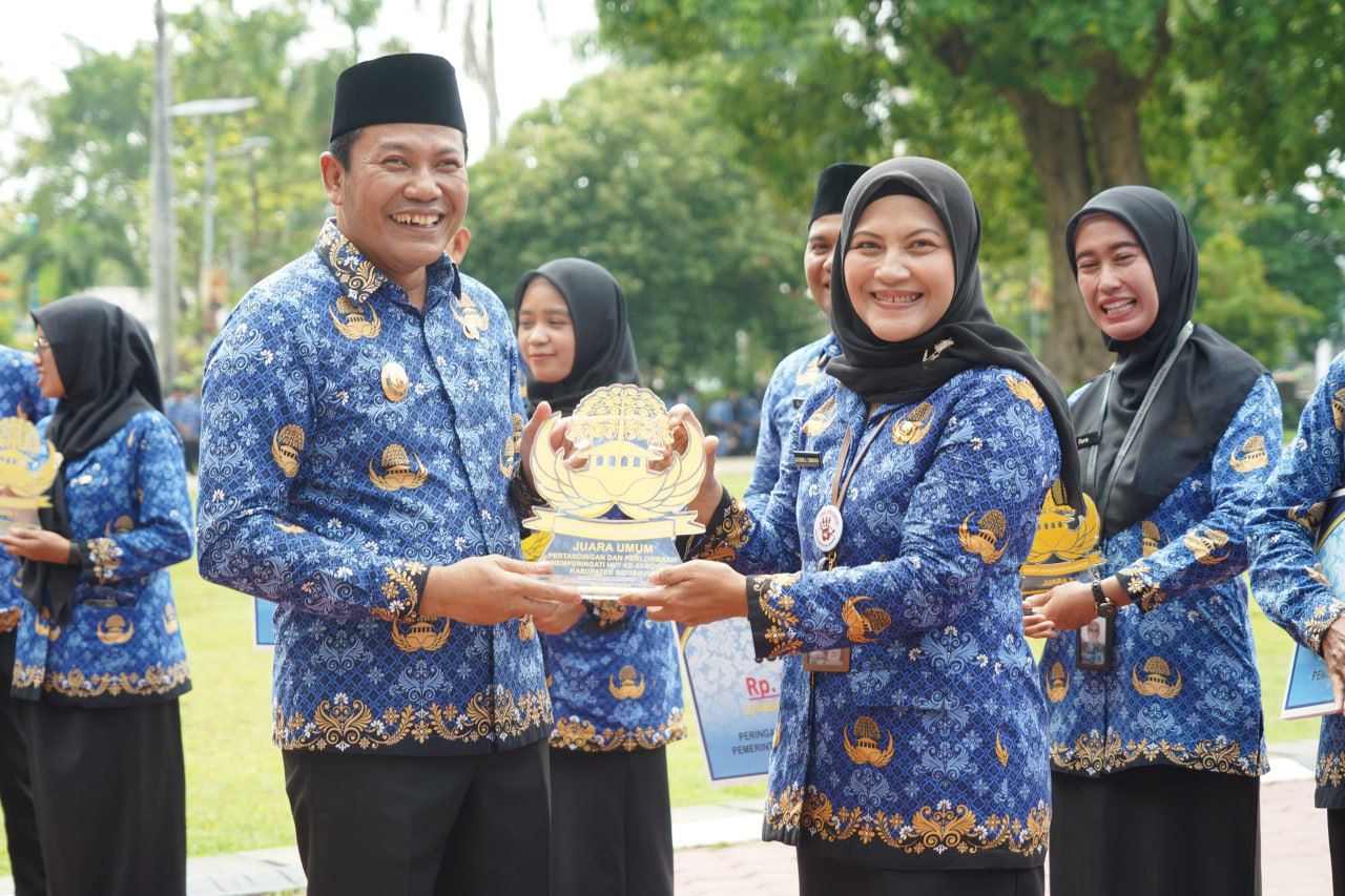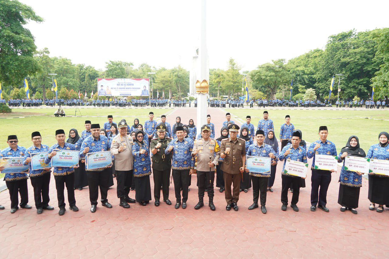 Sidoarjo |Jatim | Plt Bupati Sidoarjo Subandi menyampaikan pesan Presiden Republik Indonesia Prabowo Subianto dalam peringatan HUT ke-53 Korpri (Korps Pegawai Republik Indonesia).