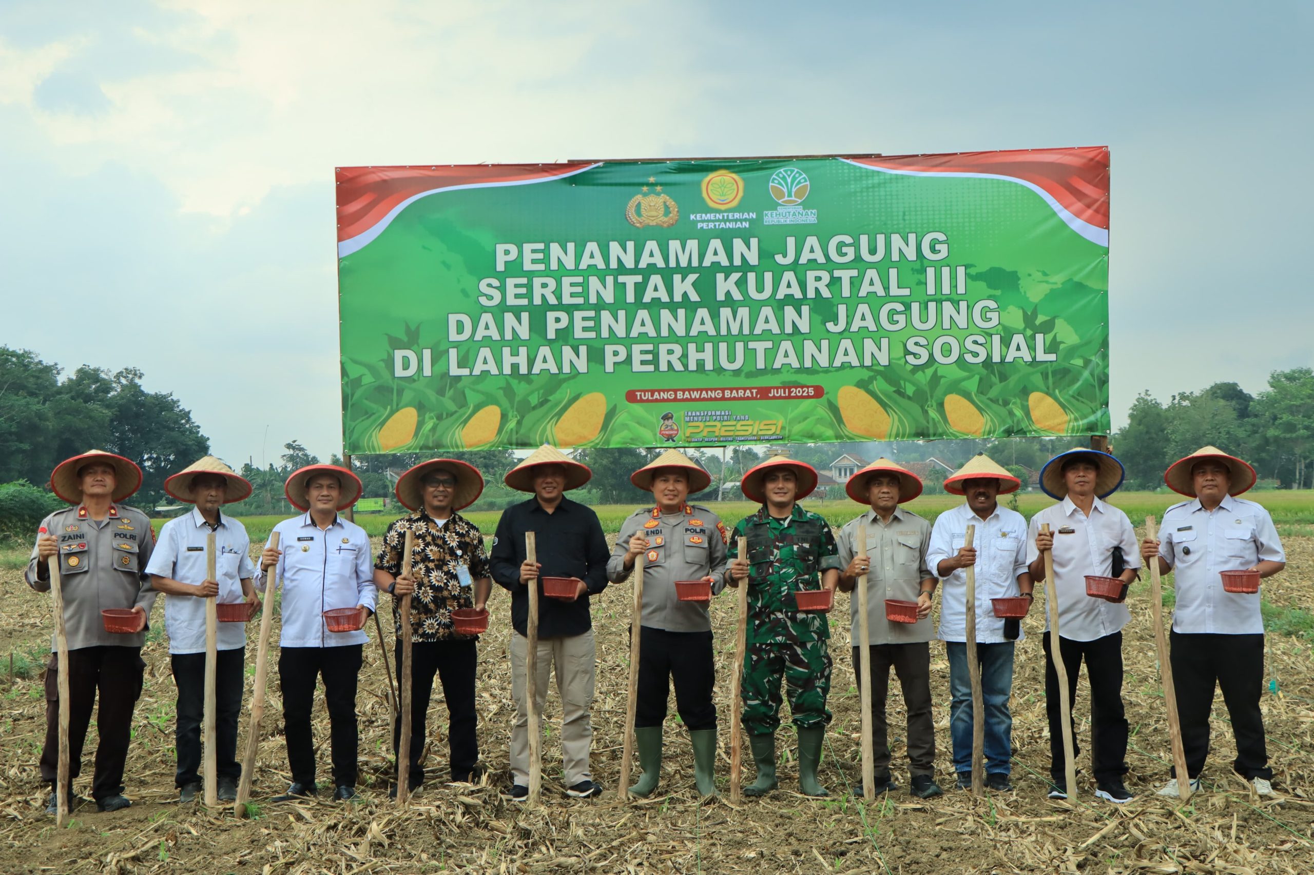 Kegiatan ini merupakan bagian dari pencanangan Penanaman Jagung Serentak Kuartal III di lahan perhutanan sosial yang digagas oleh Polri bekerja sama dengan Kementerian Pertanian.