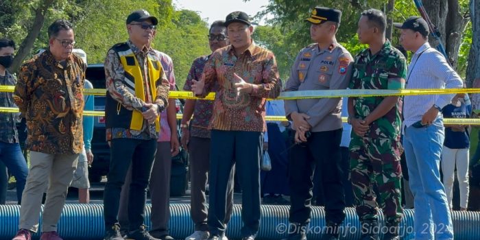 Sidoarjo |Jatim | Plt Bupati Sidoarjo Subandi melihat langsung Jembatan Desa Kedungpeluk, Kecamatan Candi, yang ambrol pada Selasa (16/7/2024), sekitar pukul 11.00. Lokasi jembatan patah itu didatangi pukul 14.00.