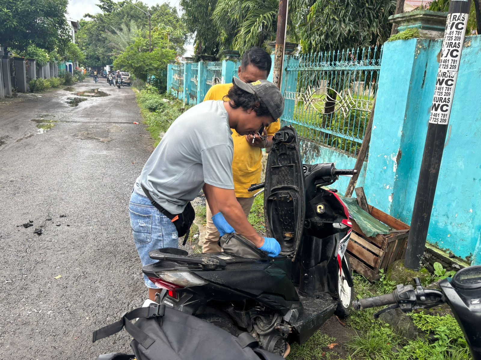 Kasat Narkoba Iptu Sofyan Hidayat menguraikan bahwa dalam penggeledahan, tim menemukan sebungkus rokok PS yang di dalamnya terdapat 16 poket kristal bening yang diduga narkotika jenis sabu dengan berat bruto 8,72 gram dan berat bersih 0,61 gram. Selain itu, ditemukan juga sebuah bong (alat hisap sabu) di dalam tas pinggang hijau yang berada di motor tersangka.