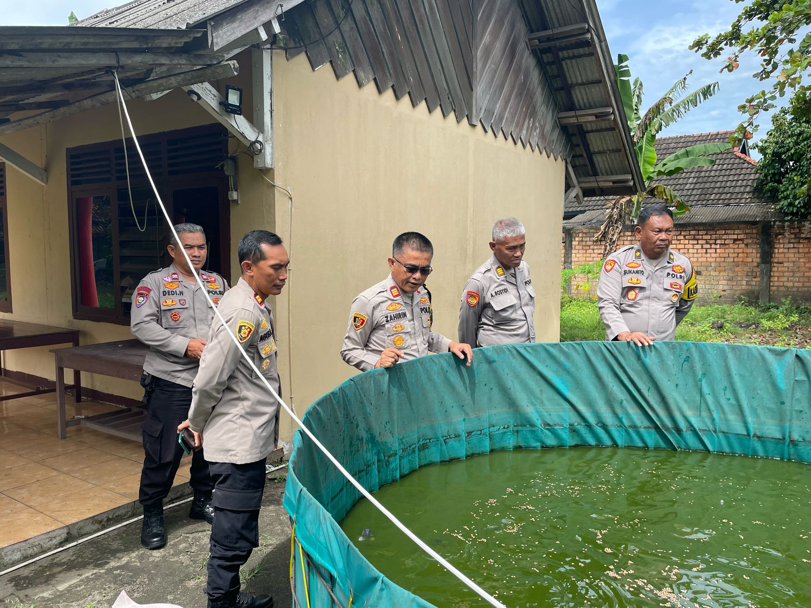 Kabagren Polres Ogan Ilir Lakukan Pengecekan Kolam Ikan Program Ketahanan Pangan di Polsek Tanjung Raja