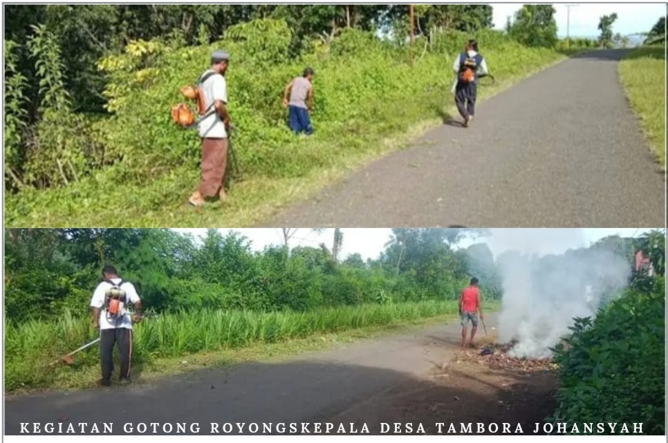 Kegiatan gotong royong ini difokuskan pada pembersihan sepingir jalan dan lingkungan, serta penataan area sepingir jalan umum desa tambora ini merupakan bagian dari upaya menciptakan lingkungan yang bersih, sehat, dan nyaman bagi seluruh masyarakat desah tambora kecamatan pekat kabupaten dompu NTB.