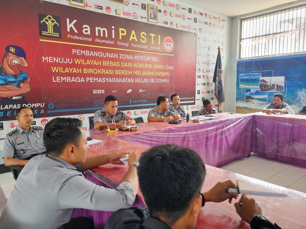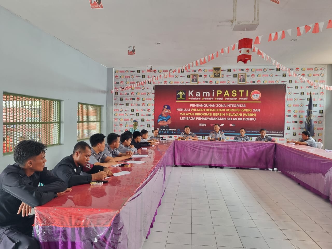 Kompas86. com.Dompu.NTB.Kepala Lembaga Pemasyarakatan Kelas IIB Dompu, H.A.Halik S.sos bersama para Pejabat struktural yang berada dibawah naungan Kantor Wilayah Kemenkumham NTB memberikan Penguatan integritas dan kedisiplinan kepada para pegawai Lapas Dompu.